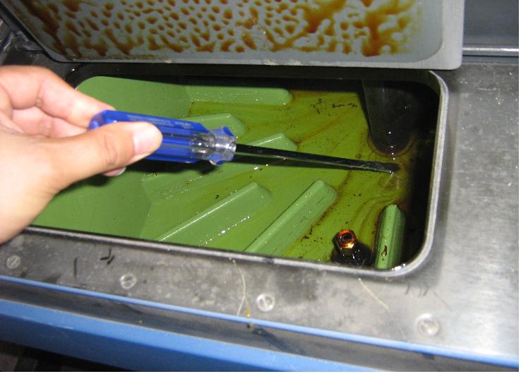 (3)清洗热熔胶熔胶缸时,避免使用有焰火或尖锐的金属硬质工具,以免刮伤胶桶内部的铁氟龙不粘胶涂层,典型错误见下图。