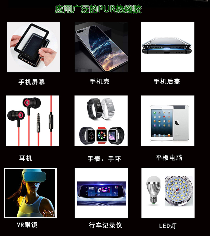 PUR热熔胶固化物为聚氨酯橡胶,其粘接强度、耐溶剂、耐油漆、耐热、耐水解等性能明显优于EVA热熔胶、水性或溶剂型胶水。