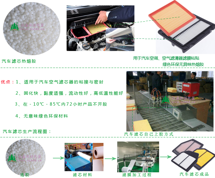 滤芯在工作过程中,空气直接与热熔胶接触,所以必须需要滤芯热熔胶符合环保和安全要求。